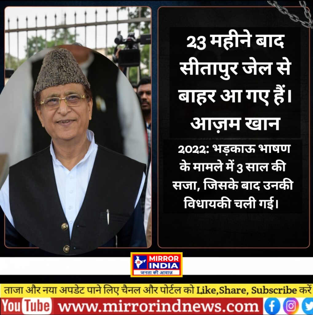 आजम खान को पहली बार फरवरी 2020 में गिरफ्तार किया गया था और वे 27 महीने जेल में रहे। मई 2022 में जमानत पर बाहर आने के बाद वे सिर्फ सवा साल तक ही आजादी का स्वाद ले पाए। अक्टूबर 2023 में उन्हें अपने बेटे अब्दुल्ला आजम के फर्जी जन्म प्रमाण पत्र मामले में 7 साल की सजा सुनाए जाने के बाद फिर से जेल जाना पड़ा। अब 23 महीने बाद वह तीसरी बार जमानत पर बाहर आए हैं।