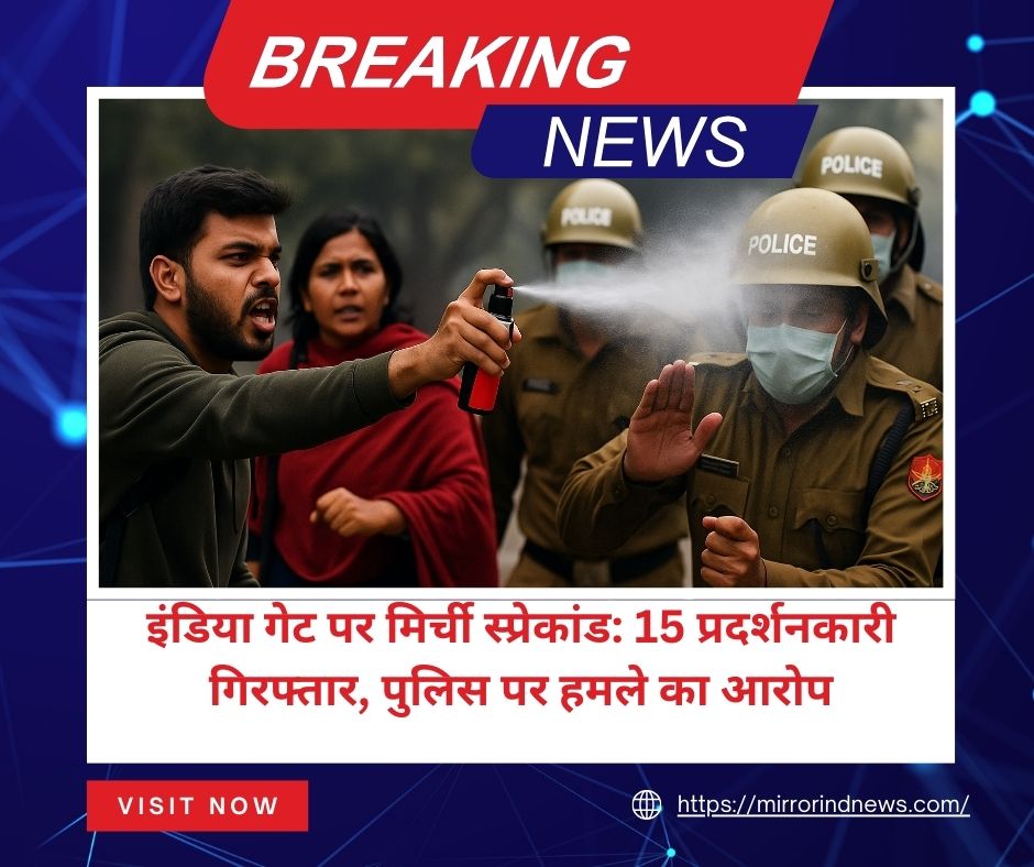 नई दिल्ली। राजधानी के इंडिया गेट क्षेत्र में वायु प्रदूषण के विरोध में हुए प्रदर्शन के दौरान पुलिसकर्मियों पर मिर्ची स्प्रे (पेपर स्प्रे) फेंकने के आरोप में दिल्ली पुलिस ने 15 से अधिक प्रदर्शनकारियों को गिरफ्तार किया है। सभी के खिलाफ सरकारी कार्य में बाधा, सड़क जाम करने और पुलिस पर हमला करने जैसी गंभीर धाराओं में मुकदमा दर्ज किया गया है।