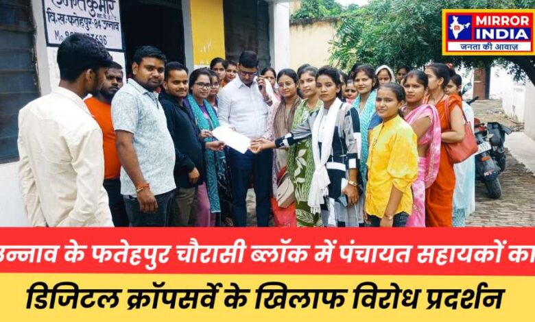 उन्नाव के फतेहपुर चौरासी ब्लॉक में पंचायत सहायकों का डिजिटल क्रॉप सर्वे के खिलाफ विरोध प्रदर्शन