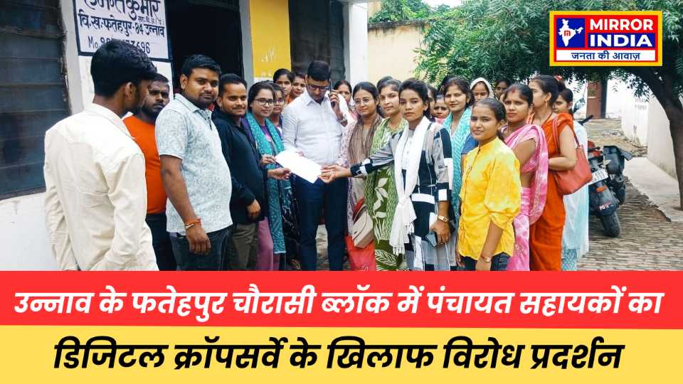उन्नाव: जनपद उन्नाव के फतेहपुर चौरासी ब्लॉक में सोमवार को पंचायत सहायकों ने डिजिटल क्रॉप सर्वे के खिलाफ जोरदार विरोध दर्ज कराया। सभी पंचायत सहायक पैदल मार्च करते हुए ब्लॉक मुख्यालय पहुंचे और एडीओ पंचायत को संबोधित ज्ञापन सौंपा।