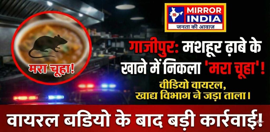 घटना गाजीपुर कोतवाली क्षेत्र के अंतर्गत वाराणसी-गाजीपुर मार्ग पर स्थित प्रसिद्ध ‘सम्राट ढाबा’ की है। यह ढाबा अपने शुद्ध शाकाहारी भोजन के लिए यात्रियों और स्थानीय लोगों के बीच काफी लोकप्रिय है। बीती रात यहां कुछ यात्री भोजन कर रहे थे। खाने के दौरान जब उन्होंने दही का ऑर्डर दिया, तो वेटर द्वारा लाई गई दही की कटोरी में उन्हें एक मरा हुआ चूहा दिखाई दिया।