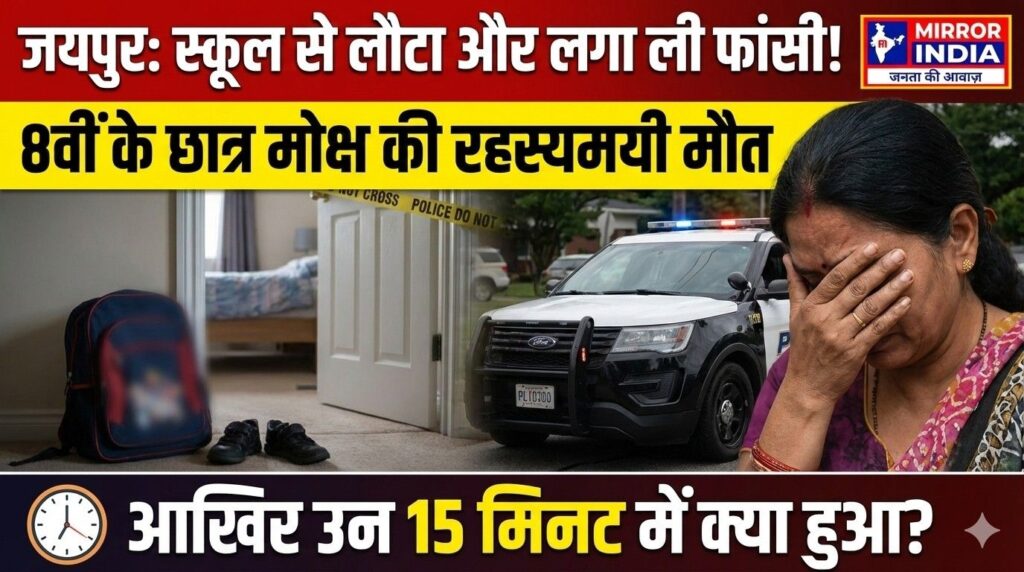 जयपुर: राजस्थान की राजधानी जयपुर में बुधवार को एक 8वीं कक्षा के छात्र की आत्महत्या ने पूरे शहर को सन्न कर दिया है। घटना प्रताप नगर थाना क्षेत्र की है, जहां स्कूल से घर लौटने के महज कुछ ही मिनट बाद 13-14 वर्षीय छात्र मोक्ष यादव ने फंदा लगाकर अपनी जान दे दी। घटना के वक्त वह अपनी बुआ के घर पर था। पुलिस को अभी तक कोई सुसाइड नोट नहीं मिला है, जिससे मौत की वजह एक पहेली बनी हुई है।