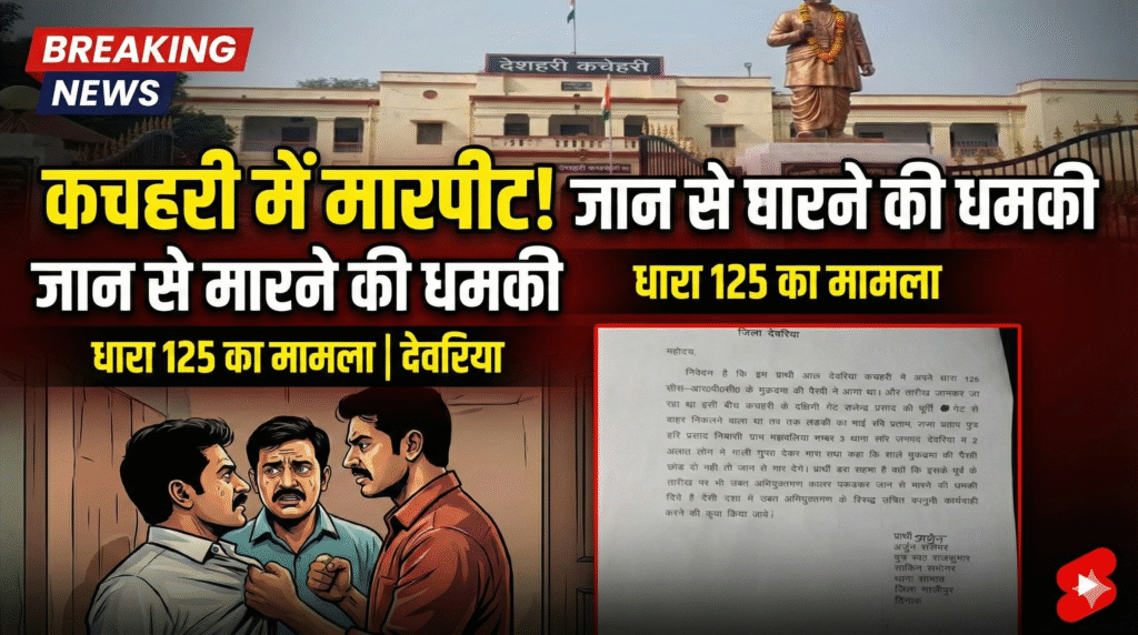 देवरिया: शहर की कचहरी में मंगलवार को एक युवक के साथ मारपीट और जान से मारने की धमकी देने का मामला सामने आया है। पीड़ित युवक धारा-125 (CrPC) के एक मुकदमे की पैरवी के लिए आया था। पीड़ित ने कोतवाली पुलिस को तहरीर देकर न्याय की गुहार लगाई है।