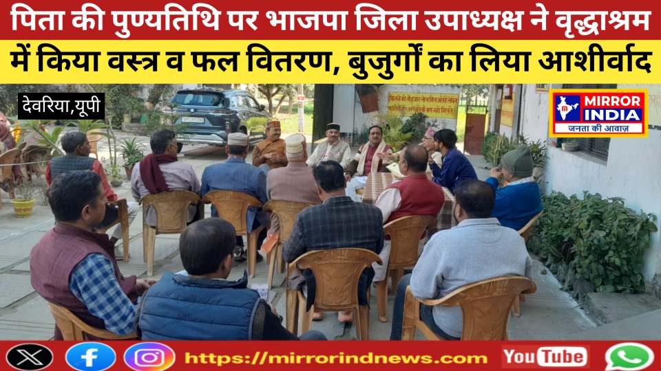 देवरिया: शहर के भुजौली कॉलोनी स्थित वृद्धाश्रम में विजय बहादुर सेवा संस्थान के अध्यक्ष एवं भारतीय जनता पार्टी के जिला उपाध्यक्ष अरुण कुमार सिंह ने अपने पूज्य पिता की पुण्यतिथि को सेवा दिवस के रूप में मनाया। इस अवसर पर उन्होंने आश्रम में रह रहे बुजुर्गों के बीच फल, वस्त्र और मिष्ठान का वितरण किया।
