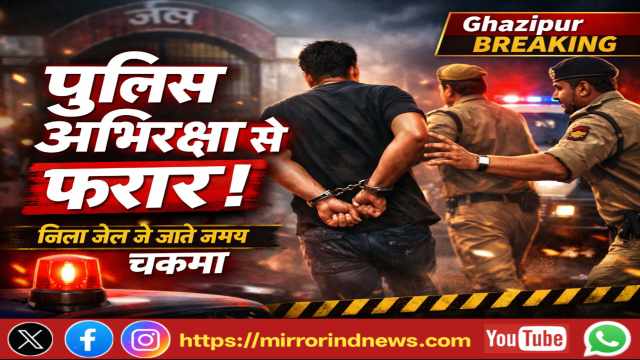 गाजीपुर: जनपद की पुलिस सुरक्षा व्यवस्था पर शनिवार की देर शाम उस वक्त गंभीर सवाल खड़े हो गए, जब एक शातिर अपराधी पुलिस अभिरक्षा से फरार हो गया। न्यायालय में पेशी के बाद अभियुक्त को जिला जेल ले जाया जा रहा था, इसी दौरान वह पुलिसकर्मियों को चकमा देकर भागने में सफल रहा। इस घटना की सूचना मिलते ही पुलिस महकमे में हड़कंप मच गया और जिले भर में नाकाबंदी कर तलाश तेज कर दी गई है।