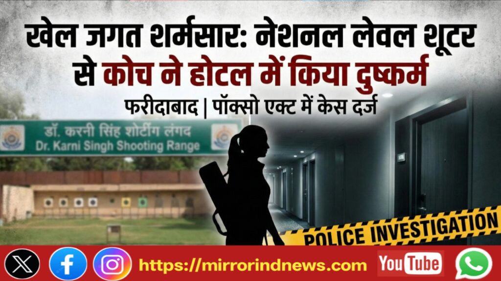 फरीदाबाद: खेल जगत को शर्मसार करने वाला एक सनसनीखेज मामला सामने आया है। फरीदाबाद में एक 17 वर्षीय राष्ट्रीय स्तर की निशानेबाज (National Level Shooter) ने अपने ही कोच पर यौन शोषण का गंभीर आरोप लगाया है। पीड़िता का आरोप है कि कोच ने खेल में प्रदर्शन की समीक्षा (Review) करने के बहाने उसे होटल के कमरे में बुलाया और वहां उसके साथ दुष्कर्म किया। पुलिस ने आरोपी कोच के खिलाफ पॉक्सो एक्ट समेत गंभीर धाराओं में मामला दर्ज कर जांच शुरू कर दी है।