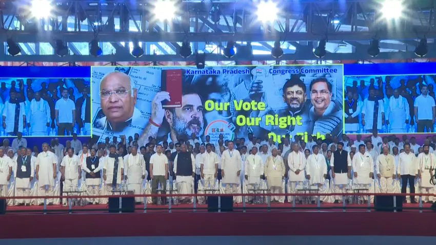 ‘हमारा वोट, हमारा अधिकार, हमारा संघर्ष’ नाम से आयोजित इस रैली में कांग्रेस अध्यक्ष मल्लिकार्जुन खरगे, मुख्यमंत्री सिद्दरमैया, उपमुख्यमंत्री डी.के. शिवकुमार, एआईसीसी महासचिव के.सी. वेणुगोपाल और हजारों कांग्रेस कार्यकर्ता शामिल हुए।