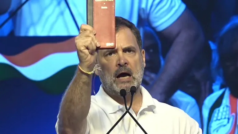 राहुल गांधी ने कहा कि कांग्रेस संविधान की रक्षा करेगी और बाबा साहेब अंबेडकर, गांधी, नेहरू और पटेल की सोच को जीवित रखेगी।