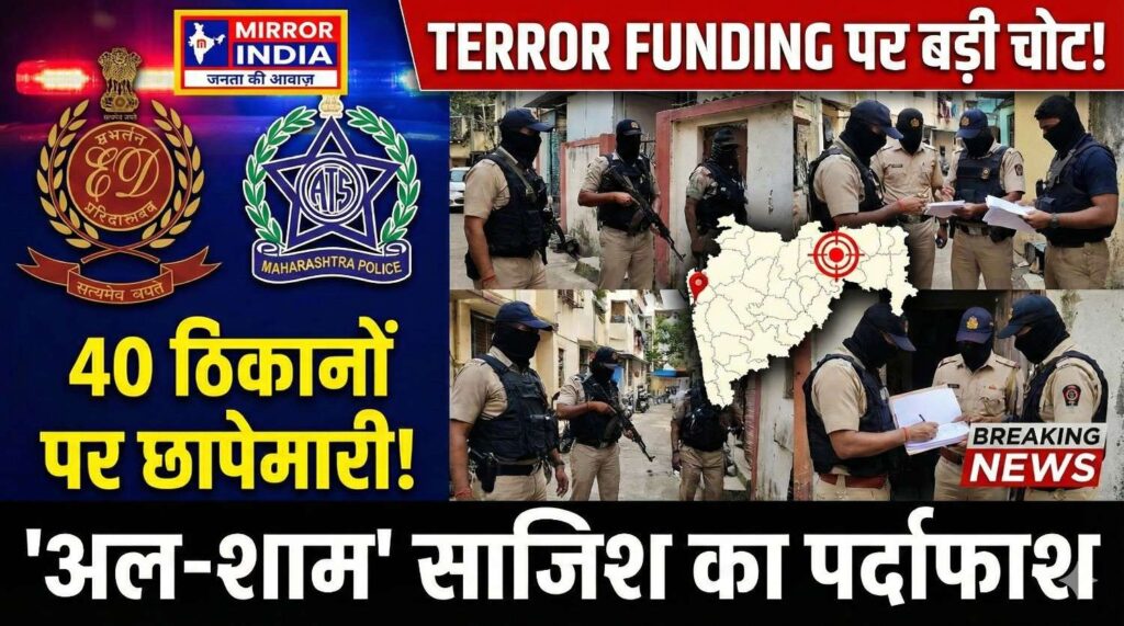 मुंबई/ठाणे: महाराष्ट्र में टेरर फंडिंग और राष्ट्रविरोधी गतिविधियों के खिलाफ गुरुवार को अब तक की सबसे बड़ी कार्रवाई देखने को मिली। प्रवर्तन निदेशालय (ED) और महाराष्ट्र एटीएस (ATS) ने संयुक्त अभियान चलाते हुए मुंबई से सटे ठाणे जिले के पडघा और भिवंडी इलाके में एक साथ 40 ठिकानों पर छापेमारी की।