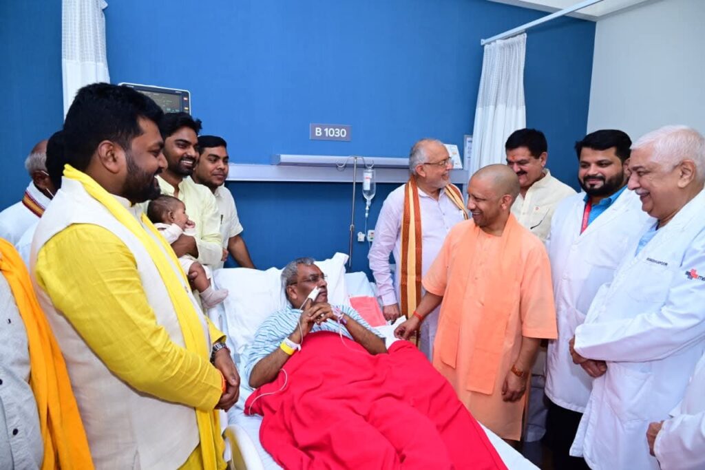 लखनऊ: उत्तर प्रदेश के मुख्यमंत्री योगी आदित्यनाथ बुधवार को लखनऊ स्थित मेदांता अस्पताल पहुंचे और वहां भर्ती कैबिनेट मंत्री एवं सुहेलदेव भारतीय समाज पार्टी (सुभासपा) के अध्यक्ष ओमप्रकाश राजभर से मुलाकात कर उनका हालचाल जाना। मुख्यमंत्री ने चिकित्सकों से राजभर के स्वास्थ्य की विस्तृत जानकारी ली और उनके शीघ्र स्वस्थ होने की कामना की।