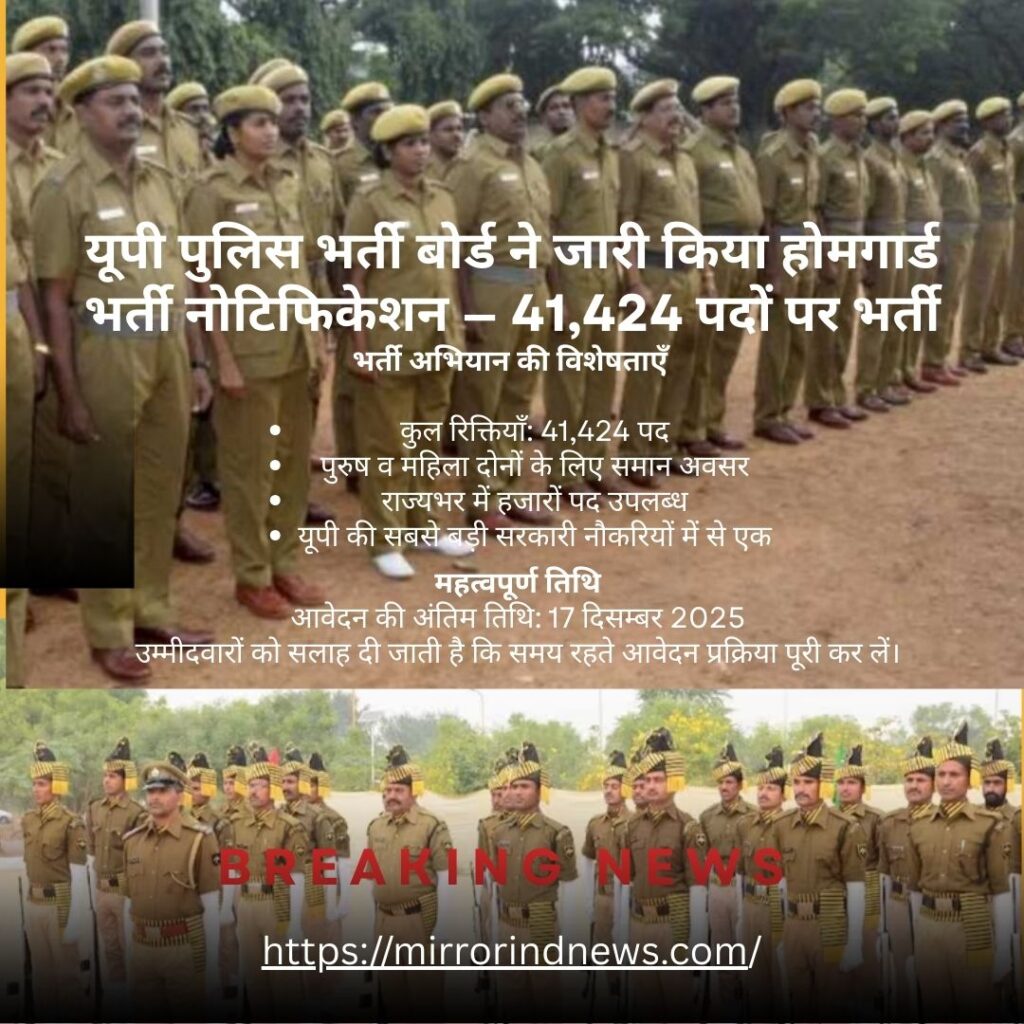 यूपी पुलिस भर्ती बोर्ड ने जारी किया होमगार्ड भर्ती नोटिफिकेशन — 41,424 पदों पर भर्ती