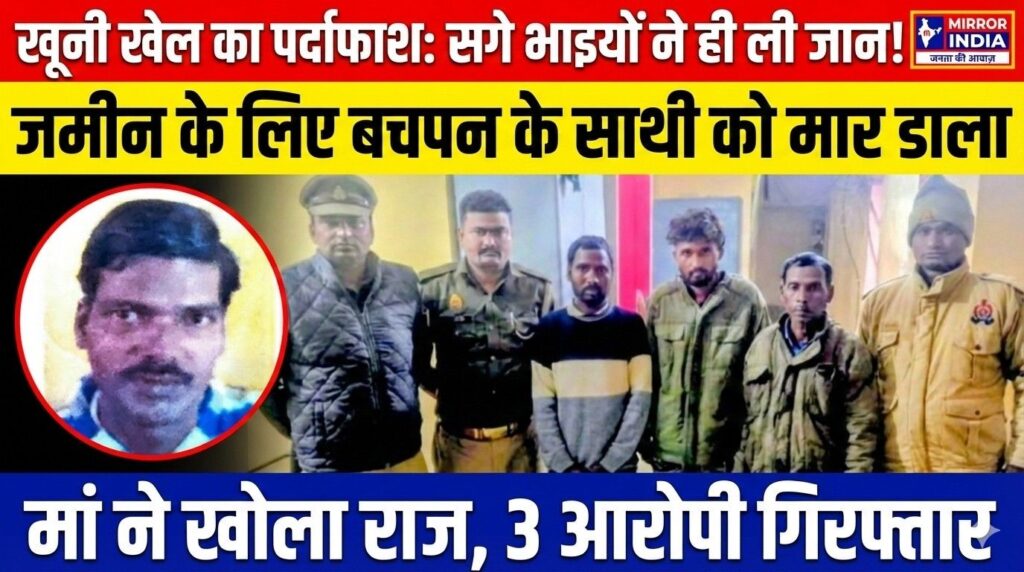 लखनऊ: राजधानी लखनऊ के मोहनलालगंज में जमीन के चंद टुकड़ों के लिए खून के रिश्तों का कत्ल कर दिया गया। यहां दो सगे भाइयों ने अपने एक मौसेरे भाई के साथ मिलकर तीसरे सगे भाई की बेरहमी से पीट-पीटकर हत्या कर दी। वारदात के बाद आरोपियों ने शव को मौरंग की बोरियों के साथ बांधकर नाले में फेंक दिया और पुलिस को गुमराह करने के लिए इसे आत्महत्या बता दिया। पुलिस ने मृतक की मां की तहरीर और पोस्टमार्टम रिपोर्ट के आधार पर इस खूनी खेल का पर्दाफाश करते हुए तीनों आरोपियों को गिरफ्तार कर लिया है।