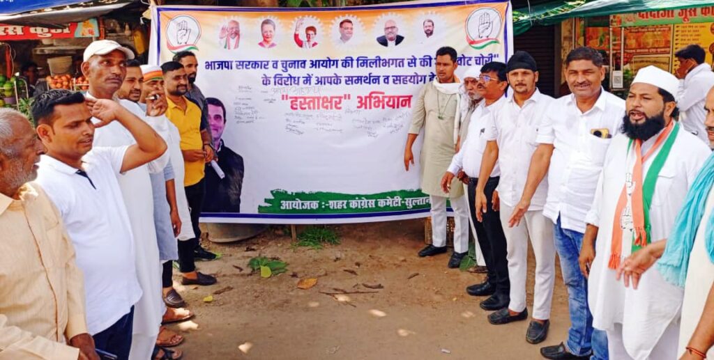 जिला अध्यक्ष अभिषेक सिंह राणा ने आरोप लगाया कि भाजपा सरकार लोकतंत्र का गला घोंट रही है। जनादेश की चोरी लोकतांत्रिक मूल्यों पर सीधा हमला है। विपक्षी नेताओं पर झूठे मुकदमे दर्ज कराए जा रहे हैं और आंदोलनकारियों पर लाठीचार्ज कराया जा रहा है। संवैधानिक संस्थाओं का दुरुपयोग कर हर विरोधी स्वर को दबाने की कोशिश हो रही है।नेताओं ने बताया कि इस हस्ताक्षर अभियान को 15 अक्टूबर के बाद दिल्ली स्थित चुनाव आयोग को सौंपा जाएगा। इसमें करोड़ों की संख्या में हस्ताक्षर शामिल होंगे।इस अवसर पर पूर्व जिलाध्यक्ष कृष्ण कुमार मिश्रा, वरिष्ठ नेता सलाहुद्दीन हाशमी, हौसिला प्रसाद भीम, रणजीत सिंह सलूजा, कमर खान, सुब्रत सिंह, आवेश अहमद, सुनील सिंह चौहान, हामिद राईनी, गुड्डू जायसवाल, सुरेश चंद्र मिश्र, अतीक अहमद, अवधेश गौतम, जाकिर हसन, मोहसिन सलीम, इमरान अहमद, इंतजार अहमद, शहबाज खान, श्याम लगन कोरी समेत बड़ी संख्या में कांग्रेसी कार्यकर्ता और समर्थक मौजूद रहे।