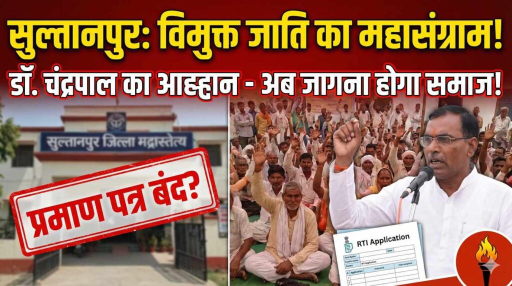 सुल्तानपुर: जनपद में विमुक्त जाति प्रमाण पत्र (Vimukt Jati Certificate) बनने की प्रक्रिया थमने को लेकर समाज में असमंजस की स्थिति है। इस मुद्दे पर मुंबई स्थित स्क्रीन राइटर्स एसोसिएशन (SWA) के लेखक और कलाकार डॉ. चन्द्रपाल राजभर ने एक महत्वपूर्ण बयान जारी कर समाज को आईना दिखाया है। उनका कहना है कि यह प्रशासनिक रोक से ज्यादा ‘सामाजिक शून्यता’ का परिणाम है।