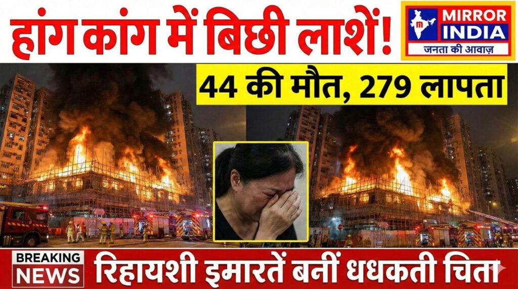 हांगकांग/ताई पो: चीन के हांगकांग में बुधवार को एक रिहायशी इलाके में हुए भीषण अग्निकांड ने पूरे शहर को झकझोर कर रख दिया है। ताई पो जिले के ‘वांग फुक कोर्ट’ हाउसिंग कॉम्प्लेक्स के 8 ब्लॉक आग की लपटों में घिर गए। इस त्रासदी में अब तक 44 लोगों की मौत की पुष्टि हो चुकी है, जबकि 279 लोग अभी भी लापता हैं। मृतकों का आंकड़ा बढ़ने की आशंका है। अपनों को खो चुके और बेघर हुए लोगों में दुख के साथ-साथ सरकार के खिलाफ भारी आक्रोश भी है।